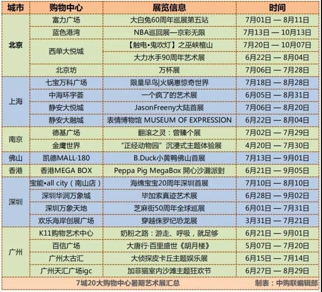 下面,筆者整理了近兩個(gè)月7城20大購(gòu)物中心,最值得關(guān)注和欣賞的IP藝術(shù)展以饕業(yè)內(nèi)人士共享。